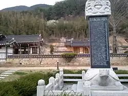 The Nokdong Seowon in Urok-ri was erected in his memory in 1789. This seowon was abolished in 1864 as part of the regent Daewon-gun's general campaign against seowon, but was reestablished in 1914 under the Japanese colonial regime. The seowon remains a popular destination for Japanese tourists in Daegu.[1]