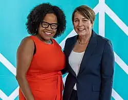 Janey was reelected in November 2019 with over 70% of the votes cast in her district.[36] In her reelection campaign, it attracted attention that she shared a campaign office with both the reelection campaign of at-large councilor Michelle Wu and the election campaign of at-large council candidate Alejandra St. Guillen.[37][38] Wu and Janey were regarded to both be progressive members of the Boston City Council.[9] After the election, Janey argued that the results, which delivered what was regarded to be the most diverse membership in the council's history, provided a political mandate for the city government to pursue more ambitious action and to work to better represent the city's population.[9]