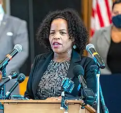 Kim Michelle Janey (born May 16, 1965) is an American politician, community organizer, and nonprofit executive who served as acting mayor of Boston for eight months in 2021.[1] She served as president of the Boston City Council from 2020 to 2022,[a] and as a member of the council from the 7th district from 2018 to 2022. As a black woman, her tenure as acting mayor made her the first woman and the first person of color to lead the city.