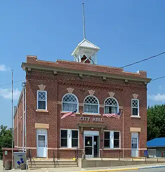 Kimball City Hall is the seat of local government for Kimball, Minnesota, United States. It was built in 1908 when the community was still a village known as Kimball Prairie.[2] When it first opened the hall housed offices for local government, professionals, and the telephone utility, as well as a public library and a municipal theater.[3] The building was listed on the National Register of Historic Places in 1982 as Kimball Prairie Village Hall for its local significance in the theme of politics/government.[4] It was nominated for embodying the importance the community placed on local government and public services in the early 20th century.[3]