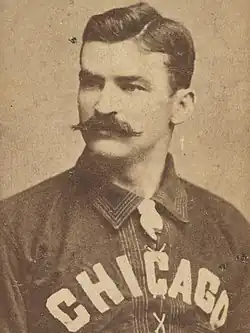 Michael Joseph "King" Kelly (December 31, 1857 – November 8, 1894), also commonly known as "$10,000 Kelly", was an American baseball outfielder, catcher, and player-manager in various professional American baseball leagues including the National League, International Association, Players' League, and the American Association. He spent the majority of his 16-season playing career with the Chicago White Stockings and the Boston Beaneaters. Kelly was a player-manager three times in his career – in 1887 for the Beaneaters, in 1890 leading the Boston Reds to the pennant in the only season of the Players' League's existence, and in 1891 for the Cincinnati Kelly's Killers – before his retirement in 1893. He is also often credited with helping to popularize various strategies as a player such as the hit and run, the hook slide, and the catcher's practice of backing up first base.[1] In 1945, Kelly was elected to the Baseball Hall of Fame.