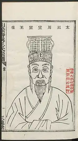 - First son, Crown Prince Jin (太子晉), the father of Zongjing (宗敬), who served as the Minister of Education of Zhou