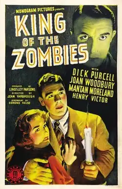 King of the Zombies is a 1941 American zombie comedy film directed by Jean Yarbrough and starring Dick Purcell, Joan Woodbury, and Mantan Moreland. The film was produced by Monogram Pictures, and was typical of its B films produced by the Pine-Thomas team. Along with flying scenes, the use of zany characters and slapstick efforts were juxtaposed with a spy and zombie story.[1]