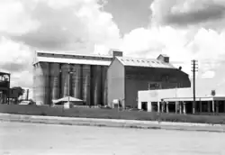 The Association was formed and registered under the Primary Producers' Cooperative Associations Act 1923 to 1926. Between September 1926 and August 1928 land fronting Haly Street and the railway line to the south was acquired as a site for operations. Located near the commercial centre of the town and adjacent to the railway line, the future headquarters of the Peanut Board was well sited for loading and unloading of produce. Accordingly, a timber-framed and -clad silo (No. 1) was constructed in 1928 adjacent to the Kingaroy/Kilkivan rail line formation, together with a long shed which housed machinery for cleaning, grading and shelling peanuts. A long shed built at the same time, called the "Dump", had a storage capacity of a further 1,200 long tons (1,200 t).[1][2]