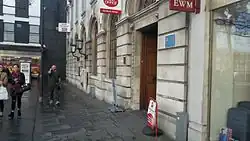 The central post office for Gloucester was opened in 1934 in Kings Square.[1] It was the city's first purpose built head post office. The building was designed by Henry E. Seccombe of H.M. Office of Works, London. The building is three storeys high, made mainly of brick and stone with concrete floors and beams, the front is faced with Portland stone, the roof is made of slate and asphalt. Two English oak doors are at the entrance of the building. It replaced the head post office in George Street by Gloucester railway station and the existing post office on the corner of Westgate Street and St Johns Lane.[11]
