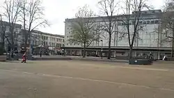 Between 1969 and 1974, during a large redevelopment of central Gloucester, the square was redesigned and new shops were built on the east and south sides. Water fountains with stepping stones and paddling areas were created in the centre of the square. [3] The Square was officially opened to the public in 1972.[4] Also at this time Kings Street was covered to become an indoor shopping centre called Kings Walk Shopping Centre. The north side of the square was redeveloped in 1984.[1] In 2006, The square was levelled and concreted, as the water fountains had fallen into disrepair. On 20 January 2014, The Golden Egg building, previously a restaurant built in the 1960s, was demolished.[5][6] At the same time, other minor improvements were also made including repainting and the addition of new benches. The square is now mainly used for markets.[7]