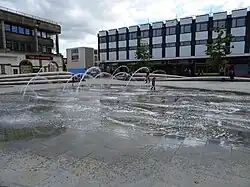 The square is part of the Kings Quarter redevelopment project, the plans are for Kings Square to remain as a public open space.[8] £5 million has been spent on the regeneration of Kings Square. The new design is based on the Severn Bore with wave-shaped granite seating areas, water fountains and coloured lighting.[4] The development started in August 2021 and the square was reopened on the 30 April 2022.[9][10]