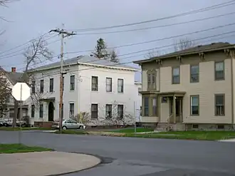 Kingsford Historic District is a national historic district located at Oswego, Oswego County, New York. It encompasses 76 contributing buildings in a predominantly residential section of Oswego. It developed between about 1830 and 1910, and includes notable examples of Italianate, Romanesque Revival, Colonial Revival, and Tudor Revival style architecture. Located in the district is the separately listed Kingsford House. Other notable buildings include the former St. Matthew's Lutheran Church (1888), 40 West Oneida Street (1898) designed by Claude Fayette Bragdon, the former Public School #3 (1860s), and West Baptist Church (1867) designed by Andrew Jackson Warner.[2]