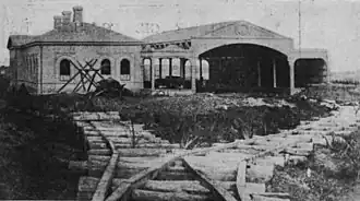 Invercargill railway station in the 1860s with the wooden rails used on the line to Makarewa until 1867