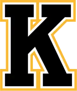 The original uniforms and logos of the OHL Frontenacs were revived from the EPHL franchise, which was affiliated with the Boston Bruins. The logo featured a yellow letter 'K' with a black outline, surrounded by black spokes leading to a yellow circle border with the name Kingston Frontenacs in black.[21]