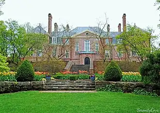 The house and grounds were built in 1926 for King and his second wife, Luise, with grounds designed by Cleveland landscape architecture firm Pitkin and Mott.[3] One year after his death in 1952, the 47-acre estate opened as a public garden to a private foundation that continues to operate Kingwood Center today. On November 7, 1976, it was added to the National Register of Historic Places.