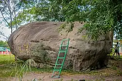 Kintampo is a town and tourist destination in the Bono East Region of Ghana. It became the capital of Kintampo North Municipal in 2004.[2][3] Kintampo has a population of 111 000.[1] It also served as the capital of the former Kintampo District. Kintampo also has Senior High Schools (KINSS) which is located at Kyeremankoma, has participated in the National Science Quiz on numerous occasions. Modern Senior High School (MODESS). Kintampo Technical Institute- KINTECH and Centre College Senior High School. There is a College of Health, The Kintampo College of Health and Well-being (CoHK) in the town, which is proposed to become a full fledge University.[4] Most of the population in Kintampo are farmers, with production focused on yams, maize, cashew, mangoes, legumes, tubers and other vegetables. The main ethnicity of Kintampo are the Bono people. There are other settler tribes including the Wangara,[5] Grushi, Grumah, Konkomba, Mo, Frafra and the others.