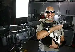 ![]() Kipkay in his garage with his former cat, Tux in 2009 | ||||||||||