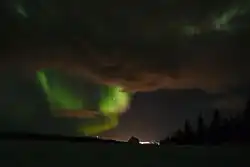 The coldest confirmed temperature ever in Kiruna was recorded at the nearby weather station with −43.3 °C (−45.9 °F) recorded in January 1999.[45] The weather station recorded 31.6 °C (88.9 °F) in July 1945, which is the all-time record.[46] The warmest month on record at the weather station was July 2018, with average high temperatures of 24.3 °C (75.7 °F).[47] Kiruna has a gloomy climate, affected by Atlantic low-pressure systems. Due to its extreme daylight cycle, the period between April and August account for 73% of Kiruna's annual sunshine according to the 1961-1990 normals, whereas the five darkest months between October and February contain only around 10% of the annual sunshine.