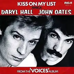 "Kiss on My List" is a song by American duo Hall & Oates. It was written by Daryl Hall and Janna Allen, and produced by Hall and John Oates. It was the third single release from their ninth studio album, Voices (1980), and became their second US Billboard Hot 100 number-one single (after "Rich Girl" in 1977). It spent three weeks at the top spot.