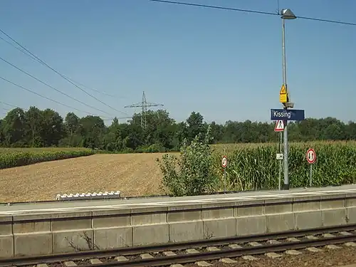 Kissing station (German: Bahnhof Kissing) is a railway station in the municipality of Kissing, located in the Aichach-Friedberg district in Bavaria, Germany.
