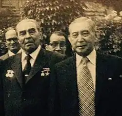 Leonid Brezhnev and Kizo Yasui as a member of delegation of Nihon Keidanren, Livadia Palace