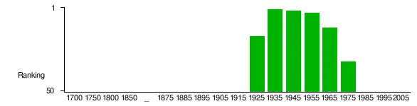 22. ^ "Vornamens-Hitlisten" [List of first names] (in German). Statistics for German first names. Knud Bielefeld. Archived from the original on 2008-02-21. Retrieved 2018-11-28.{{cite web}}: CS1 maint: others (link)