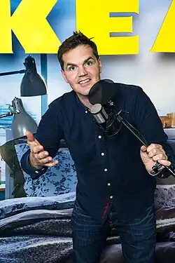 Kjell Mikael Eriksson (born 27 December 1975)[1] is a Swedish radio presenter, television personality, blogger and author. In 2008 he was a regular guest at Vakna! med The Voice which was broadcast both on the radio station The Voice and on Kanal 5. Eriksson also goes by the pseudonyms of "Kjelleman", "Kjell ger igen" and "DumKjell". He has worked on the comedy show Pippirull and has presented the morning show Morgonpasset, and Sovmorgon all of them broadcast on Sveriges Radio. He also has presented the show Långlunch at the local radio Sveriges Radio Stockholm. Eriksson has frequently appeared on commercial television and radio channels such as RIX FM, The Voice, Kanal 5 and TV3. He has also written the biography Kjell, about his upbringing in Täby in the 1980s when he was severely overweight.