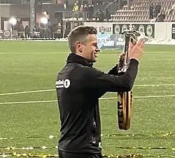 In 2018, Knutsen became head coach for Bodø/Glimt after Bjørkan moved to the role of sports director.[2] The team finished the 2019 Eliteserien in second place, and Knutsen received the Eliteserien Coach of the Year award for this accomplishment. In 2020, Knutsen led Bodø/Glimt to their first ever Norwegian national league title, in a record-breaking season where they lost only one game, and he was again awarded Coach of the Year.[3] In 2021, the team won their second Eliteserien title and Knutsen was awarded Coach of the Year for a third consecutive time. That same season, Knutsen led Bodø/Glimt to the group stage of the UEFA Conference League, the club's debut in the group stage of a European tournament, where his outfit became the first team in history to score six times against a José Mourinho side in a 6–1 victory against Roma at Aspmyra.[4][5] The team reached the quarter-finals before being knocked out by future champions Roma 5–2 on aggregate.