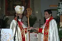 When Pope John Paul II established the St. Thomas Syro-Malabar Catholic Diocese of Chicago in 2001, all the Knanaya Catholic faithful in the United States who had become part of the local Latin parishes and the nine Knanaya Catholic Missions under the Latin bishops came under the pastoral jurisdiction of this diocese.[4] Considering the desire of the community and to help him with the pastoral administration of the Knanaya Catholic faithful in the diocese, Bishop Mar Jacob Angadiath appointed Rev. Fr. Abraham Mutholath on 3 October 2001 as one of the two Vicar Generals (Syncellus) of the diocese with special charge of the Knanaya Catholics. Bishop Mar Jacob Angadiath officially accepted all the Knanaya Catholic missions in the United States on 29 October 2003 as part of his diocese and asked the mission directors to continue their service in their respective missions.