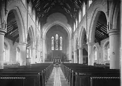 The town church dates from the 11th century,[14] but much of it was rebuilt in the 19th century. It is one of only two in Wales dedicated to St Edward, patron saint of England before St George was chosen.[12] This English dedication is a symptom of the dual English/Welsh nature of the town, which was not legally resolved until 1535, when Knighton was finally confirmed as part of Wales by the Acts of Union.[15] Knighton also has a Baptist chapel and a small Catholic church.