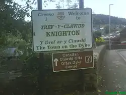 The Welsh name, Tref-y-clawdd, meaning and referring to "town on the dyke", was first recorded in 1262 and officially given to the town in 1971.