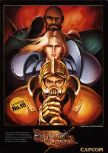 The gameplay is similar to other Capcom beat 'em ups, such as Final Fight and Capcom's previous hack-and-slash fantasy title The King of Dragons. There are seven stages, each with its own boss and a variety of generic enemies that try to stop the players' progress.[3] The fights rely strongly on the blocking ability, which is triggered by pressing the attack button, then pressing the joystick away as the opponent strikes. If successful, the player gains a few seconds of invincibility with which to counter-attack, but if no one strikes the player's character while holding the block, they will tire and drop their guard, making them vulnerable to attack. Blocking is vital in certain cases, since some bosses will be vulnerable only after their attack has been blocked by the player.