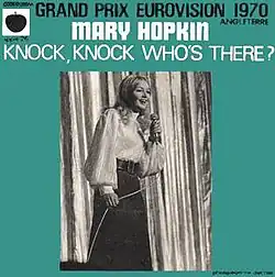 "Knock, Knock Who's There?" is a song written and composed by John Carter and Geoff Stephens, released on Apple Records. It was originally sung and recorded by the Welsh singer Mary Hopkin and was the United Kingdom's entry at the Eurovision Song Contest 1970, where it came second. The single version was produced by Mickie Most and reached No. 2 on the UK charts.