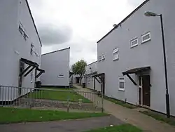 A new wave of development commenced in the 1960s at Inns Court, occasioned by the need for more homes following the further clearance of inner city areas which had been devastated by the Bristol Blitz.[4] Prefabricated homes, which had been erected since World War II at Filwood Park were demolished in the 1960s.[8] Subsequently, new homes were built on the Radburn principles. "Common features were grouped houses arranged around a cul-de sac street layout thus the street layout broke away from the conventional street grid pattern",[4] but this style of development is now considered to be a failure, due to the lack of "a safe and well-overlooked environment."[4] The layout of housing built around short cul-de-sacs "has resulted in a physical environment that contributes to isolation rather than facilitating community interaction", according to a 2009 city council report on the area.[4] By 2008, around 45 per cent of the 4,475 homes were owner occupied.[16] Plans were announced in 2010 for demolition of 1,000 homes in Inns Court. Local residents were opposed to this, and following their campaign,[17] the council withdrew the plans and met with residents to discuss plans for redeveloping Filwood Broadway with new shops and a supermarket.[18]