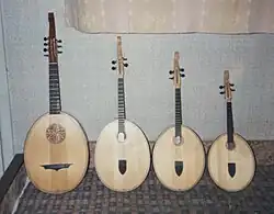 The kobza (Ukrainian: кобза), also called bandura (Ukrainian: бандура) is a Ukrainian folk music instrument[1] of the lute family (Hornbostel-Sachs classification number 321.321-5+6), a relative of the Central European mandora. The term kobza however, has also been applied to a number of other Eastern European instruments distinct from the Ukrainian kobza.[2]