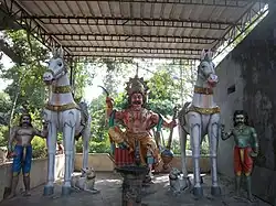 The temple is located in Manavalanallur, in the outskirts of Virudhachalam in Cuddalore district in Tamil Nadu on the road from Virudhachalam to Manavalanallur.[3] The temple has a five tiered rajagopuram, the gateway tower, which pierces the granite wall surrounding the temple. The sanctum faces East and the image of the presiding deity is a small altar 3 ft (0.91 m), unlike most temples in the state which have sculpted granite or stucco images. There are separate shrines for Idumban, Kadamban. There are two images of Muniappa facing the sanctum in the Mahamandapam. There is a shrine of Siddhi Vinayakar in the Mahamandapam.[1]