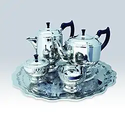 Russian tableware plant Kolchug-Mizar is the largest manufacturer of tableware, plate and cutlery in Russia. It was founded in 1871. The plant is situated not far from Moscow (Kolchugino, Vladimir region). Kolchugino plant is well-known most because of popular kolchugino tea glass-holders or podstakanniks (Russian: подстаканник).[1]