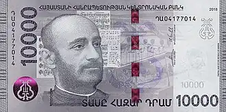 Since 2018 Komitas appears on the 10000 Armenian dram banknote.