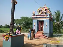 ![]() Konaiyur Village main street with the Bajanai Koil and Panchayat Building | |