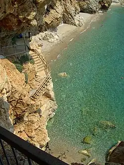 A few kilometres from Cavtat there is Pasjača, selected by Forbes in 2024 as the most beautiful beach in Europe, hidden below the Konavle cliffs.[9]