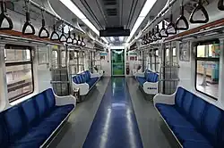 The Class 341000 trains used an ivory-colored interior with a long sheet prior to their overhauls. All trains now use a white interior. LED display monitors are installed on the top of each car. The end cars have a space for wheelchairs.