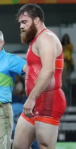 Korey Jarvis (born October 4, 1986)[3] is a Canadian wrestler who most notably won a gold medal in the 125 kg category in men's freestyle wrestling at the 2014 Commonwealth Games.[4] He has additionally, competed and won the Canadian National Wrestling Championships for three consecutive years in both freestyle and Greco-Roman styles, the only wrestler to have done so. In July 2016, he was officially named to Canada's 2016 Olympic team. At the 2016 Summer Olympics in Rio, he placed 8th in the 125 kg category in men's freestyle wrestling.[5][6] Jarvis most recently placed 7th in the 125 kg category in men's freestyle wrestling at the 2017 World Wrestling Championships in Paris, France.