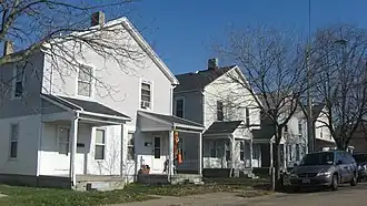 The Kossuth Colony Historic District, named for Lajos Kossuth, is a nationally recognized historic district bounded by Baltimore Street, Mack Avenue and Notre Dame Avenue in Dayton, Ohio. The Kossuth Colony was built in 1906 to house Hungarian immigrant workers for the Barney and Smith Car Company, a rail car manufacturer that ranked among Dayton's largest and most venerable firms. Comparatively few changes have been made to the forty houses in the colony, although the houses' white picket fences have been removed.[2] Many houses in the district are simple gable-front residences with minimal setbacks, and asbestos siding covers many exterior walls in the district.[3]