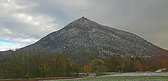 Kranzhorn is a 1,368 m (4,368 ft) mountain in Tirol, Austria and Bavaria, Germany. It lies on the western edge of the Chiemgau Alps. The German-Austrian border between Bavaria and Tyrol runs across its summit. The Kranzhorn and the opposite Wildbarren formed the Alpine gateway of the Inn Valley Glacier during the Würm glaciation. On the German side, the mountain belongs to the municipality of Nußdorf am Inn in the Rosenheim district, and on the Austrian side, to the municipality of Erl in the Kufstein district.