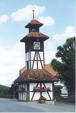 The Cluniac Priory of Hettiswil was built during the High Middle Ages in the nearby village, but today only the foundation of the romanesque Priory church is visible. The Priory was responsible for a chapel on Sandhubel which was first mentioned in 1560, but no trace of the building exists. The village of Hettiswil and the right to hold the low court in the village were given to the Priory in 1107. In 1406 both the low and high courts in Hettiswil came under Bernese control, though the Priory remained a major landowner.[3]