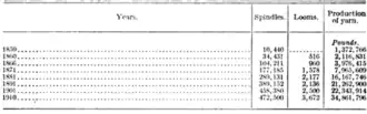 The carding and spinning machinery was from the firm of Platt Brothers & Co Ltd, in Oldham, England. Some of the looms were English, but most of them were made by the firm in its foundry and machine works, which were an adjunct of the mill. Riving power included 11 water turbines with a combined horsepower of 8,550, and supplementary steam engines of 700 horsepower were employed. Seventy per cent of the spindles were used in making yarns for sale principally among weavers in the St. Petersburg and Moscow textile districts. A specialty of the mill was 90s ply yarn, made from Egyptian yarn, for the rubber-tire manufacturers. The range of yarns produced was wide, running from 3s to 90s, and about 330,000 of the spindles were mules. The woven textile consisted mainly of print cloth in various types of construction and sateens, both woven from 34s warp and 38s weft. Practically all the goods were shipped to a factory in Moscow during this time.[2]