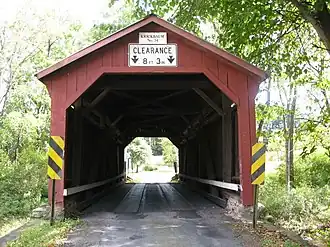 Built in 1875, this historic structure is a 62.1-foot-long (18.9 m), Queen Post Truss bridge that crosses South Branch Roaring Creek. It is one of twenty-eight historic covered bridges that still exist in Columbia and Montour Counties.[2]