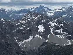 The Kreuzkarspitze is built of brittle main dolomite rock.[4]