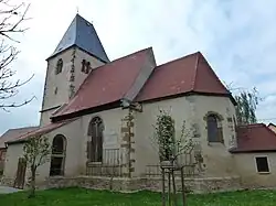 Pond and church in Kreypau