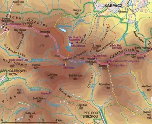 ![]() Map of the central Krkonoše/Karkonosze | |