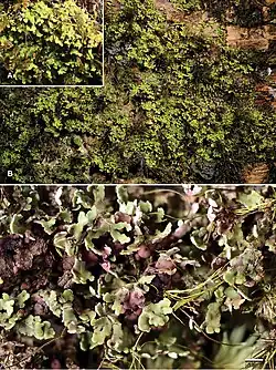 Krogia is a genus of corticolous lichens in the family Ramalinaceae.[1] It occurs in tropical humid forests and rainforests.[2] The genus was circumscribed by Norwegian lichenologist Einar Timdal in 2002, with Krogia coralloides assigned as the type species.[3] These tiny lichens form distinctive coral-like cushions on tree bark, with their scale-like lobes (squamules) divided into finger-like branches that give them a miniature branching appearance. The genus is quite rare, with only six known species found scattered across mountain forests from the Caribbean to Southeast Asia and the Pacific islands.