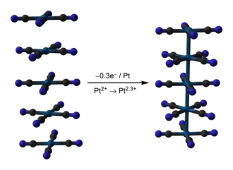- ^ Krogmann, K.; Hausen, H. D. Z. (1968). "Pt-Chain Structures. 1. Potassium Tetracyanoplatinate Violets K2[Pt(CN)4]X0,3·2,5H2O (X=Cl,Br)". Z. Anorg. Allg. Chem. 358: 67. doi:10.1002/zaac.19683580108.