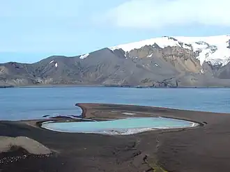 Kroner Lake is a circular lake 370 m (1,210 ft) in diameter, lying immediately west of Whalers Bay, on Deception Island in the South Shetland Islands of Antarctica. Its old name, "Tokroningen", meaning the two kroner piece, was given by whalers during the period 1905–31. The original name was altered to Kroner Lake in 1950, by the UK Antarctic Place-Names Committee following a survey of Deception Island by Lieutenant Commander D.N. Penfold, Royal Navy, in 1948–49.[1]