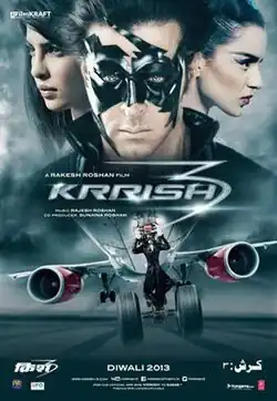 Krrish 3 is a 2013 Indian Hindi-language superhero sci fi film written, produced and directed by Rakesh Roshan,[6] who wrote the screenplay with Honey Irani and Robin Bhatt. It is the third film in the Krrish series, following Koi... Mil Gaya (2003) and Krrish (2006).[7] The film stars Hrithik Roshan, Vivek Oberoi, Priyanka Chopra and Kangana Ranaut. In the film, Krishna Mehra, also known as Krrish, with his wife, Priya Mehra, and his scientist father, Rohit Mehra, face an elaborate conspiracy orchestrated by the mad scientist Kaal and his gang of mutants, led by the ruthless Kaya.